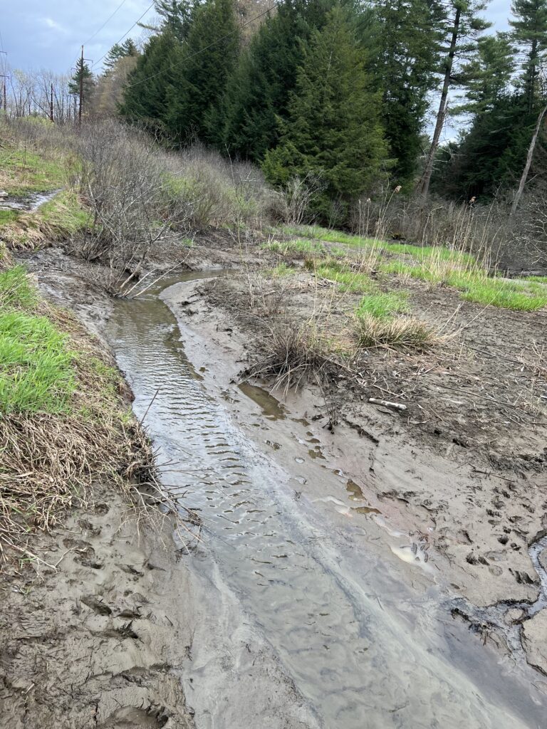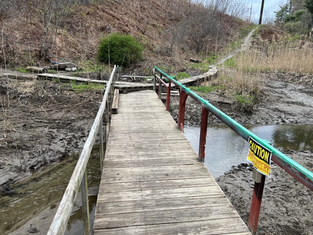 Going back to the original site for the final time after spending all year there was bittersweet. The most obvious phenological changes were the changes in foliage and the pond’s water level. Below is my sit-down sketch, instead of the water level being high enough to cover most of the area, there is now a little stream. I would have thought this would have been reversed with all of the rain we’ve had recently and the melting snow. I have become pretty familiar with this spot, the major landmarks are the pond and bridge I try to see if there are any prints in the mud each time I visit but the majority of the time it seems to just be dog prints. While walking there I always pass by the same woodpecker holes as well.
