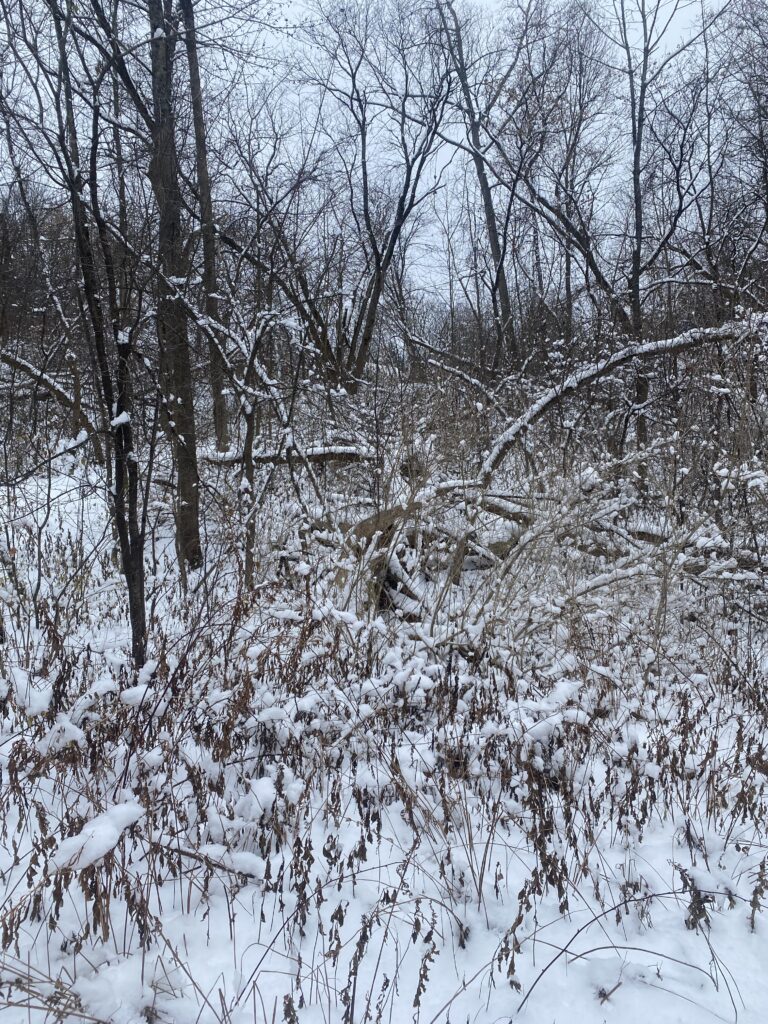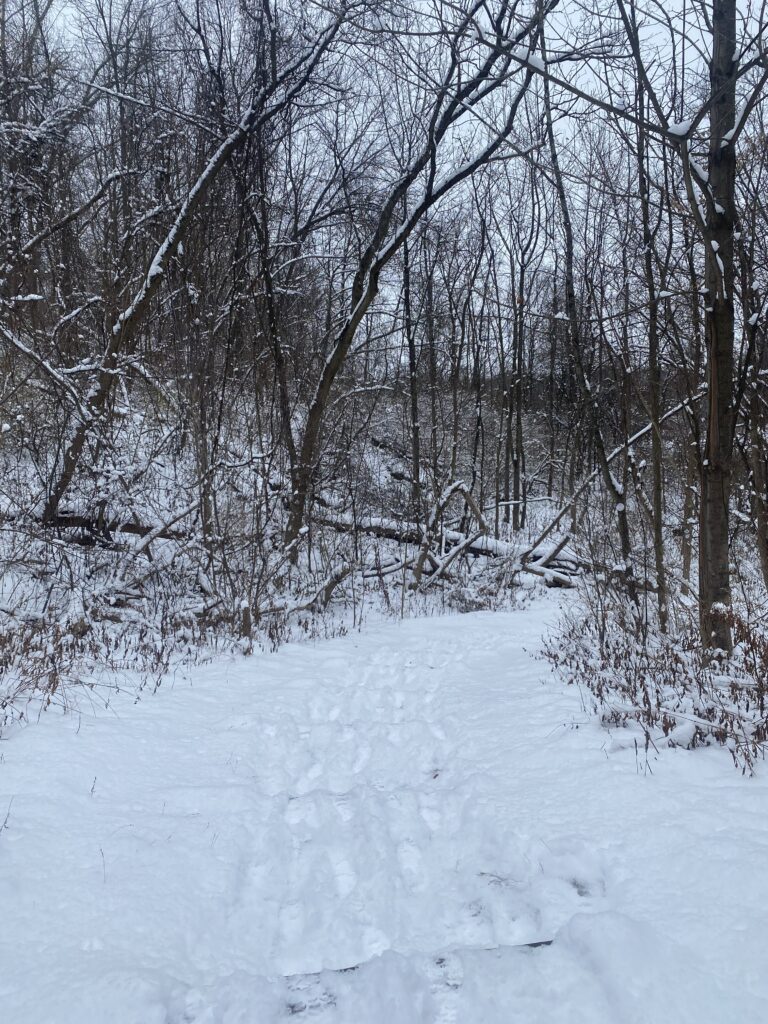 As my time in this space comes to a close and I reflect on my time at Salmon Hole, I realize that I have thoroughly enjoyed spending some time here every few weeks. My favorite trip was the final one because of the snow, but I still loved all of them. Generally, what I love about nature is the peacefulness and calm that it brings me. The sound of the river at Salmon Hole brought a calming aspect that stuck with me. I enjoyed sitting on the steps along the trail and taking in my surroundings, which was all trees. I loved seeing how the space changed as I visited it over the autumn season. I got to see as the leaves turned yellow, then died, then all fell off.