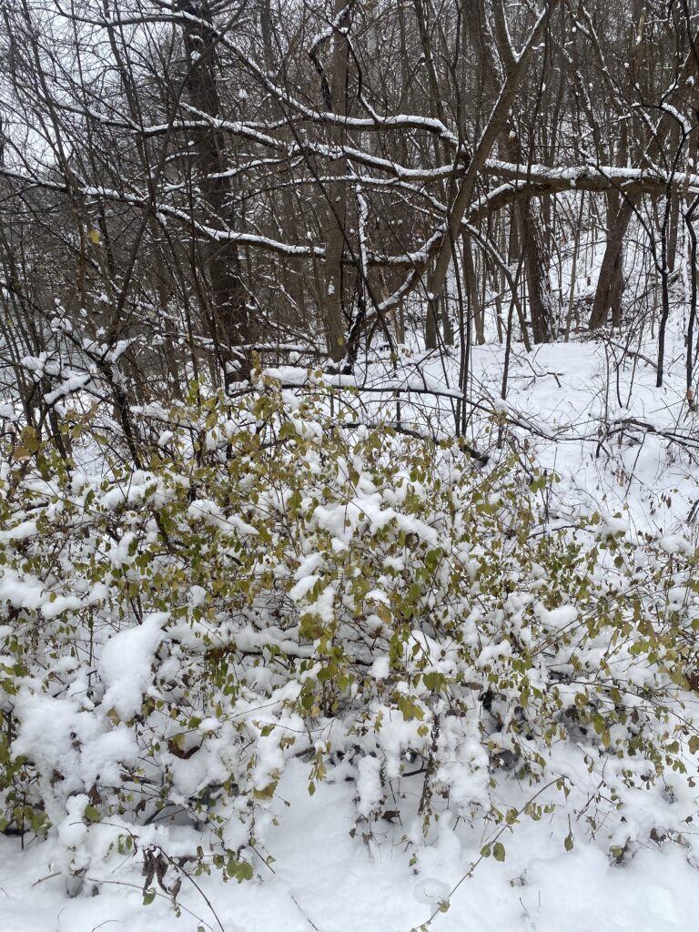 Stick season is upon us! For the time, my phenology spot is almost completely bare of leaves. There are only a couple species that still hold leaves on them, including buckthorn. The only leaves I spotted at my spot are pictured below.