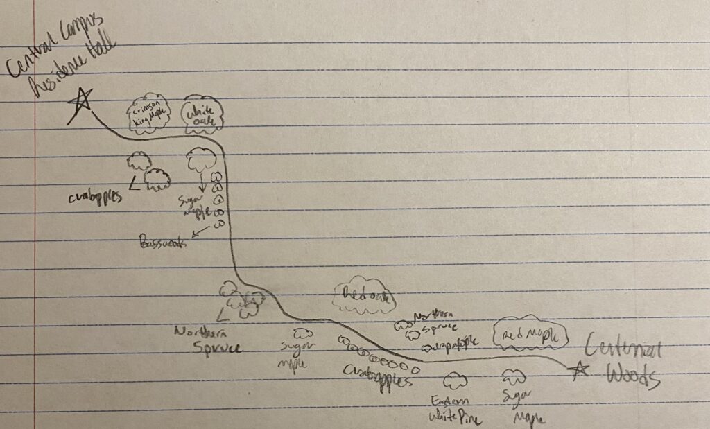 Throughout my journey these past semesters visiting my site, I have grown quite fond of the time I have spent with it, ultimately allowing me to feel a part of my place. When I first came to the spot, I felt like an outsider who was disturbing the natural peace of the environment. Yet, with time and learning about place-based education, I learn the beauty behind coexisting with my phenology spot. After making this realization, I felt the forest greet me every time I returned, no matter how long we had been apart. It may sound odd to say, but I did grow a love for my spot. It felt very sentimental visiting it for the last time because it looked similar to how I first viewed it, making me notice the journey my spot and I took together. I hope my spot doesn’t miss me too much over summer break, and I look forward to visiting it once again when I return to campus.