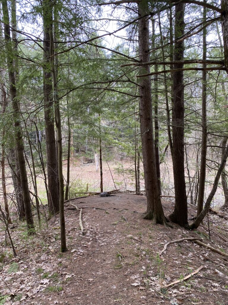 When arriving at my spot, I felt a sense of relief flow over me. One of the many beauties about my location is that it is deep within Centennial Woods, so whenever I go there I truly feel disconnected from the outside world. The hemlock grove was green as ever and the lady ferns in the understory were stretching their leaves toward the sky. One distinct change I noticed that I’ve never seen before was remnants of a campfire. I am not sure what the policy of having a fire in Centennial Woods is (I’m assuming frowned upon) but if allowed my spot would be the perfect place due to its circular shape and proximity to the marshy land below. Oddly enough, I also know of two UVM students who got married this past spring at my phenology spot too. These human interactions at my spot have played a grand role in the relationship between nature and culture as it serves for a place not only place-based learning but recreation as well. This intersection of culture and nature help further develop humans’ involvement in socio-ecological systems, which breaks down the barriers that nature and man are unequal when they truly are. When both ecosystems and humans thrive in unison, it creates a sustainable balance allowing humans to use an area, like my phonology site, as a place dedicated to recreation, education, or spirituality without implicating the nature of the environment.