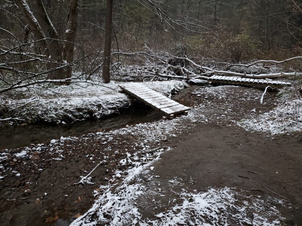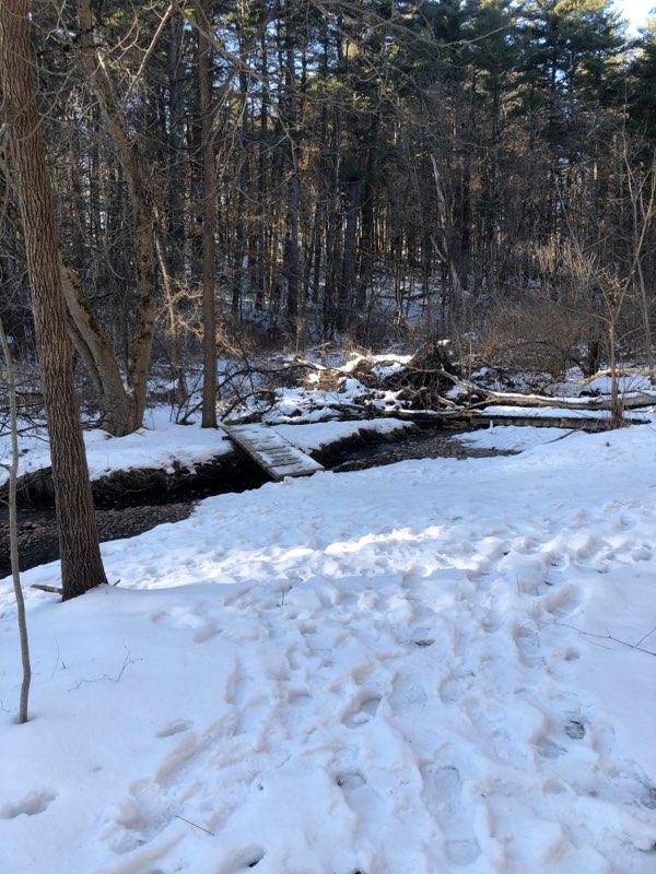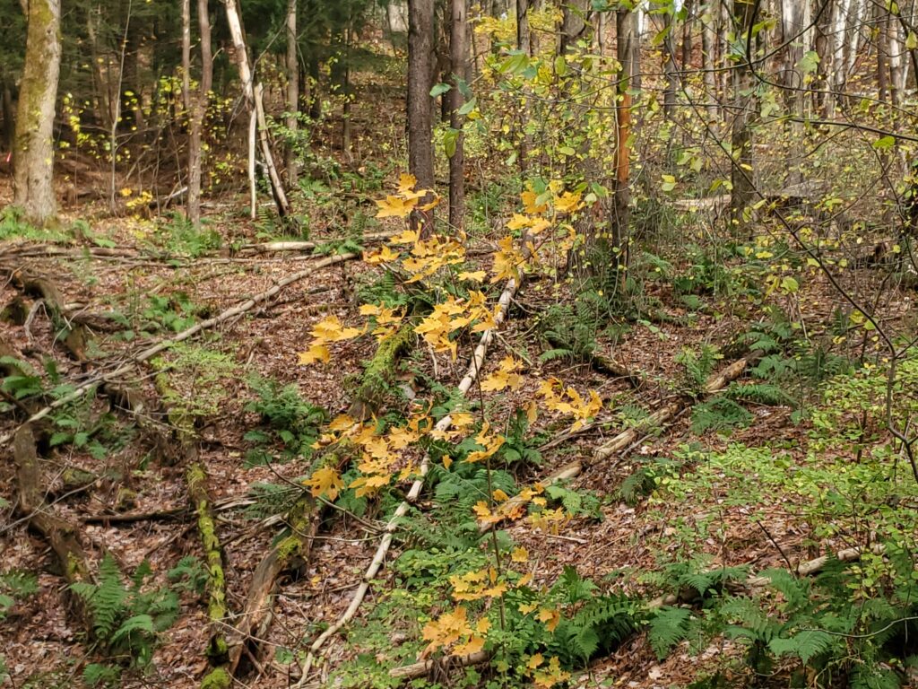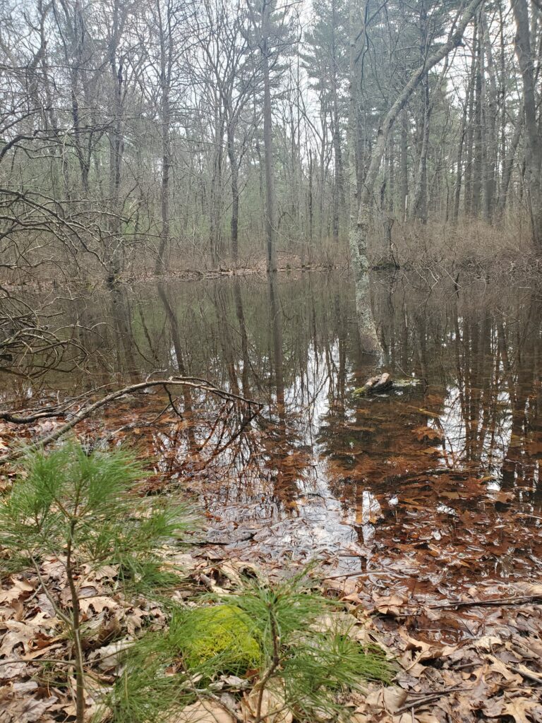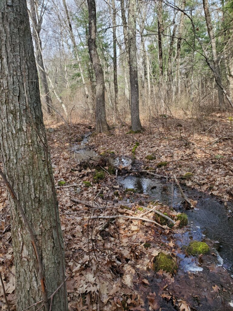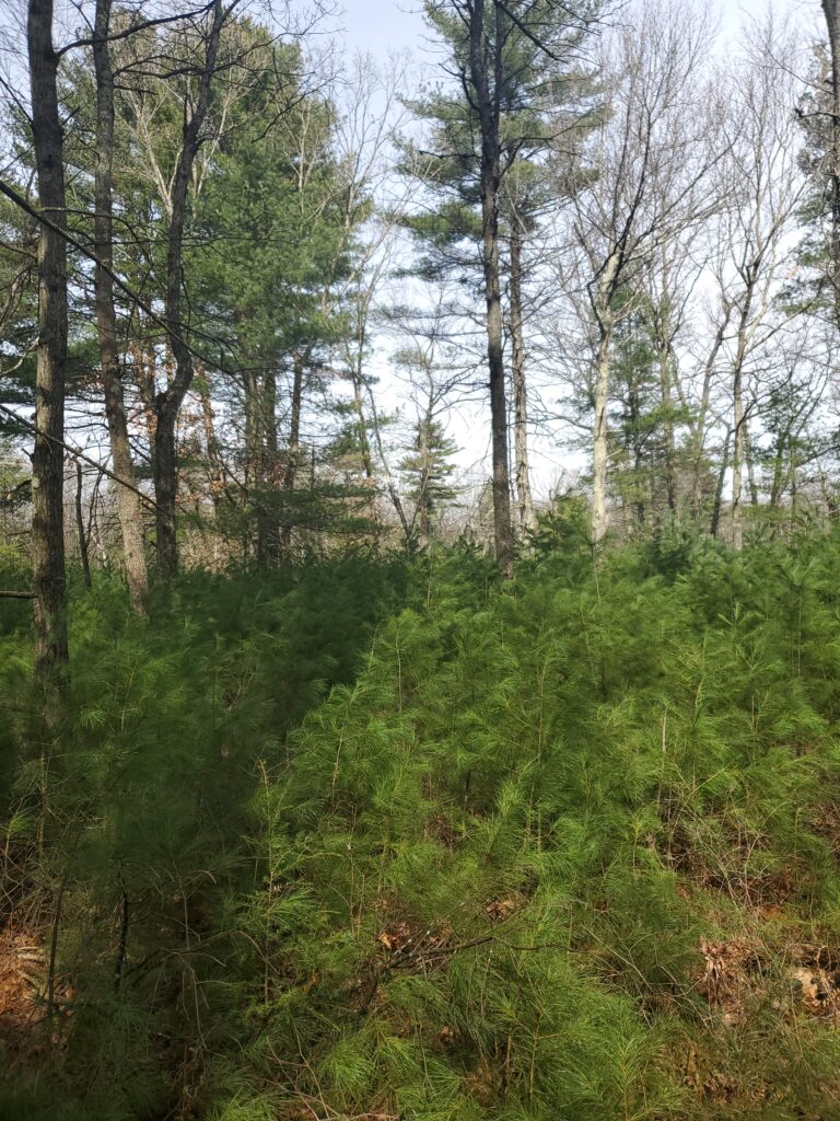 Due to the situation that the world has found its self in, the location in which my blog focuses on has had to change. This months post is going to look at the seasonal changes of Adams Farm, a small public forest down the street from my house. Walking through the forest with my dog in late march, it is clear to see the changes that have happened since the last time I was home from college. The snow has all melted and the temperature has been between low and high forties. The signs of changing seasons are not limited to just the melted snow or the warm temperatures. Many of the deciduous trees are beginning to bud and re-grow their leaves. The small shrubs and ground cover plants are beginning to sprout up and show even more signs of spring beginning. Wood frogs also have almost become fully grown and when I walked passed a small pond and it sounded like there were hundreds of them in the pond. There were other observations that I made that don’t involve the changing of seasons that I found interesting. One of the observations that I made was the edge habitat along the power lines. There were more younger trees and bushes trying to grow into the cleared out area. Another observation that I made that was a really positive one was that there was a very healthy hemlock tree not far from the trail. This observation cheered me up because hemlock trees in my area have been struggling with a non native bug that lays their eggs on the needles of the tree and the larva eat almost all the needles they can.