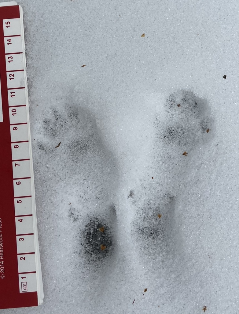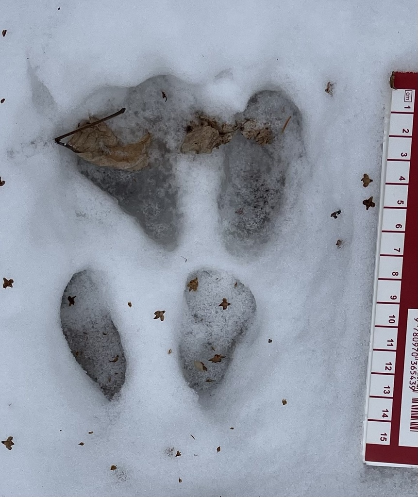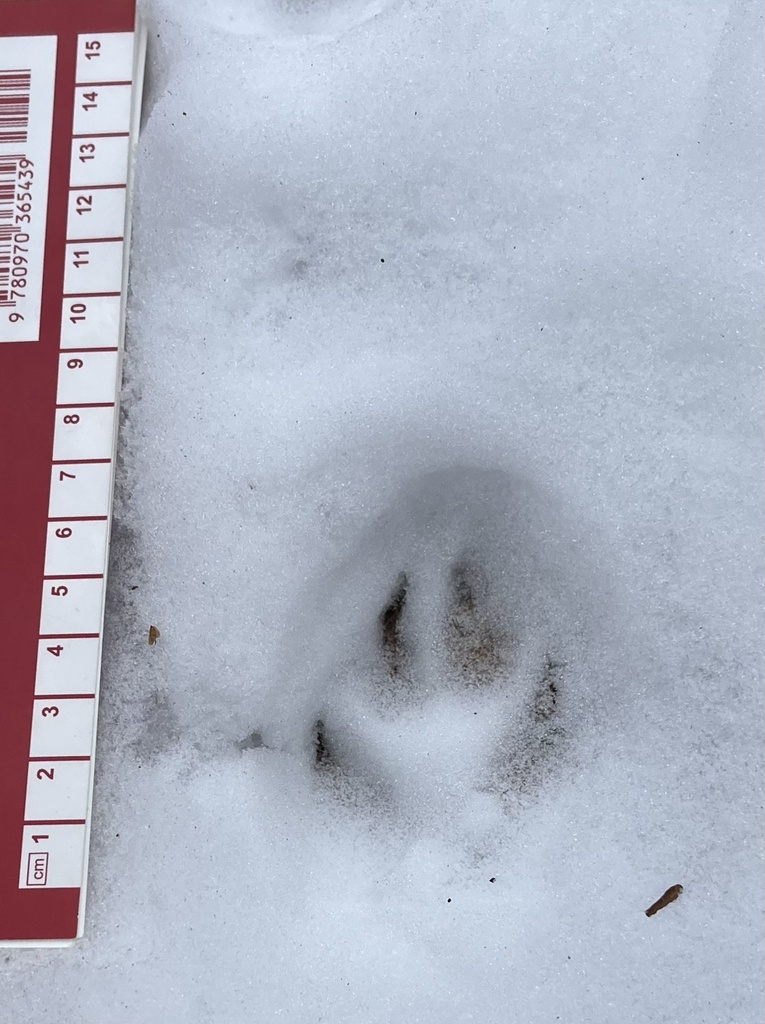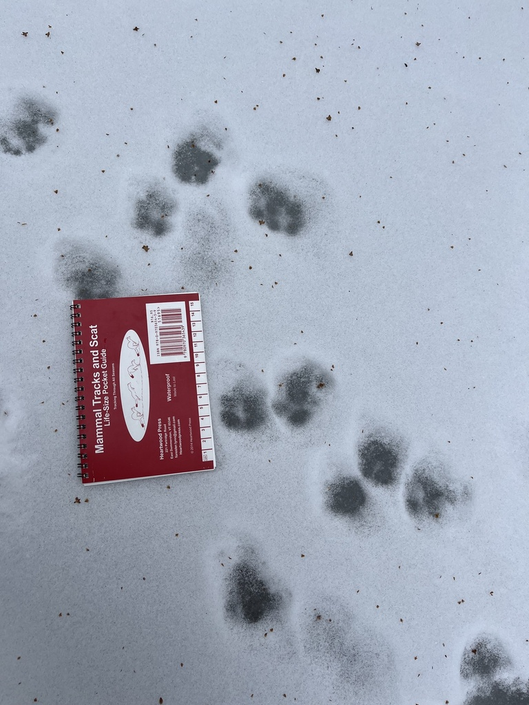 In the past, I struggled to find signs of wildlife at my spot. That being so, I was wary of making the trek down to it, through snow and ice, but I was rewarded for my troubles. At least five different types of tracks could be found all throughout the area. As someone who has never done mammal tracking before, I can only make educated guesses based on the Mammal Tracks and Scat Life-Size Pocket Guide and recommendations from the iNaturalist community, but here are my possible IDs.