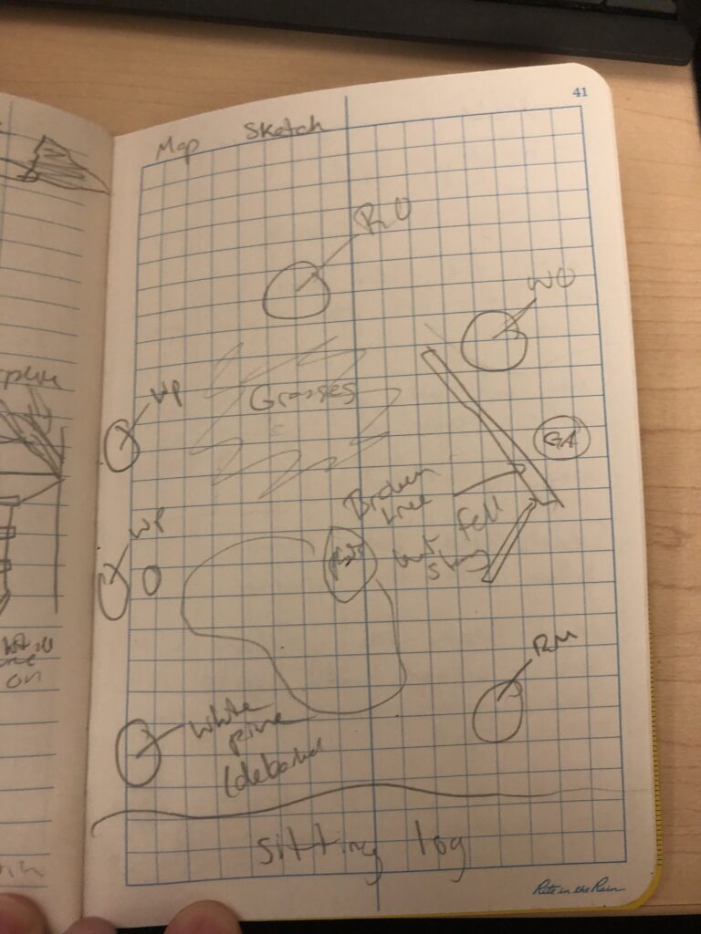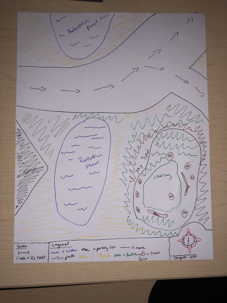 After creating my map, then adding further detail, many things became clear in the area that I hadn’t thought of before. The ponds are fed from the water that runs off the hill, the golf course is right next to the campus, and the natural clearings in my area are caused by the seepage and poor drainage of water in the area.