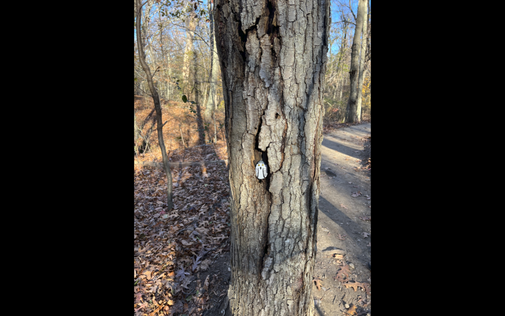 The major landmarks I have come in common with would be the apartment complex to the right of my tree and a small stream/wetland area straight down a hill from my tree. The minor landmarks I have become familiar with is the downhill location, and a small wooden fort nearby.