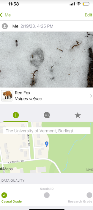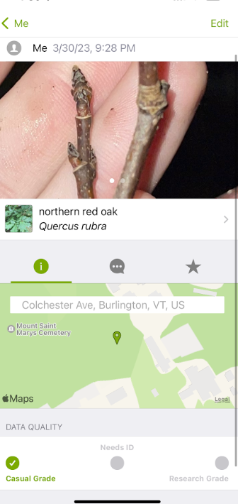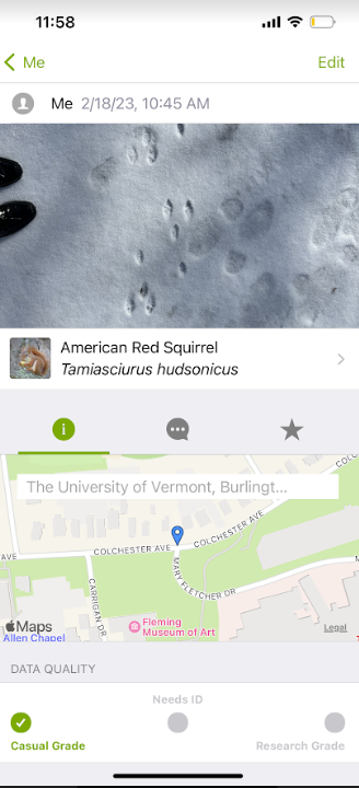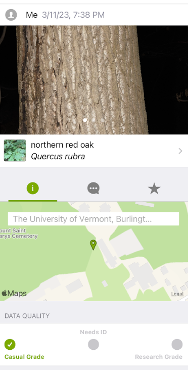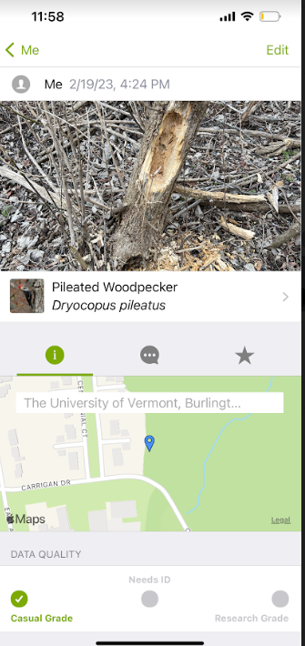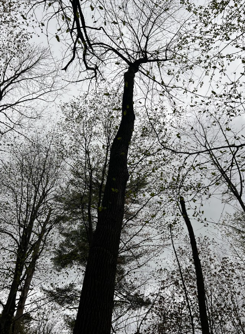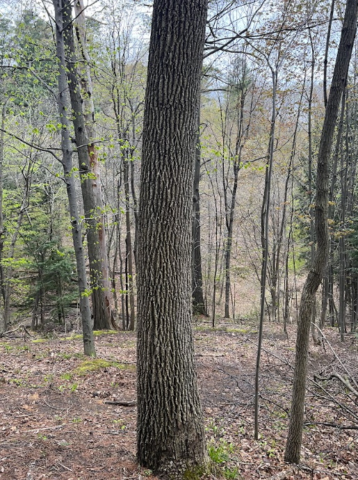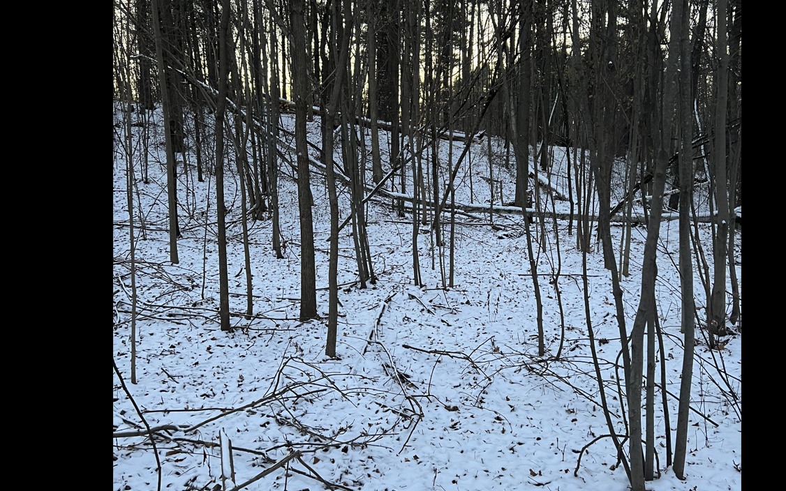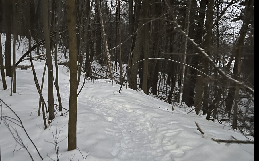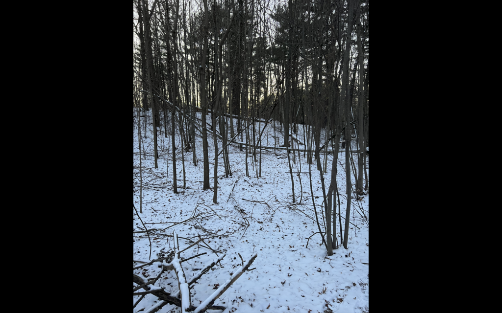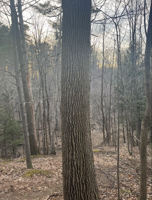 Culture is hugging this natural forested area. There are University of Vermont buildings to the left and an apartment complex to the right. Because of this there is less wildlife to be seen as well as a likelihood of more trash. Furthermore, because this area has a large amount of foot and bike paths, the undergrowth has been trampled so there is little natural brush.