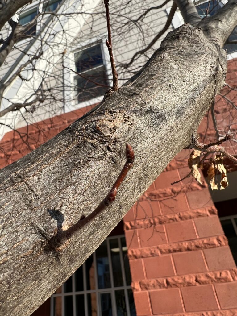 This tree is right outside my dorm, so not much has changed, the major difference between the last post and this one phenologically is that the weather has been warmer recently. The tree has not yet make leaves or flowers, and probably will not do so until it is consistently warmer and less snowy.
